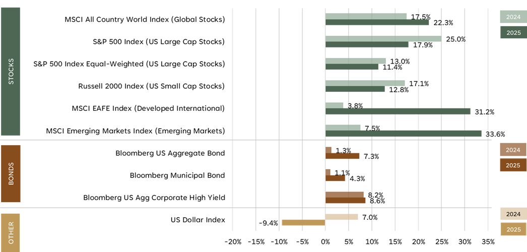 - 2025 was a strong year for markets, driven largely by excitement around artificial intelligence.